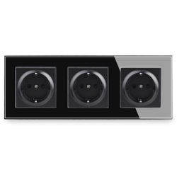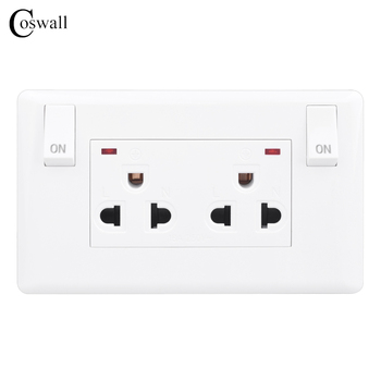 COSWall ปลั๊กเต้ารับติดผนังแผงกระจกคริสตัลสีขาวมาตรฐานสหภาพยุโรปเต้ารับสามช่องปลั๊กเยอรมันสเปนรัสเซีย