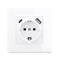 COSwall แผงกระจกคริสตัลสีขาวรุ่นใหม่ซีรีส์ HG ซ็อกเก็ตติดผนังมาตรฐาน EU ช่องเสียบ USB Type-C แบบคู่พอร์ตชาร์จ SCHUKO